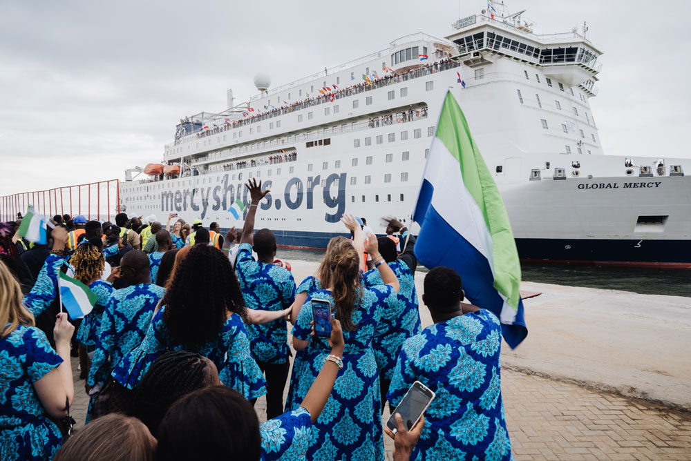 The world’s largest civilian hospital ship, the Global Mercy™, was welcomed back to Freetown on Wednesday in a partnership between international charity Mercy Ships and the government of Sierra Leone to deliver more than 1,400 life-transforming surgeries and continued training opportunities for Sierra Leonean healthcare workers.